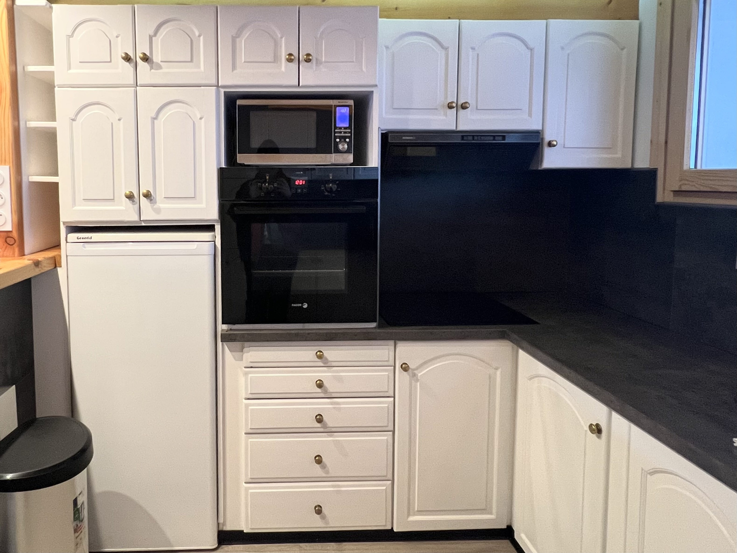 The kitchen is fully equipped with a fridge freezer, oven, induction hob, microwave, kettle and dishwasher.