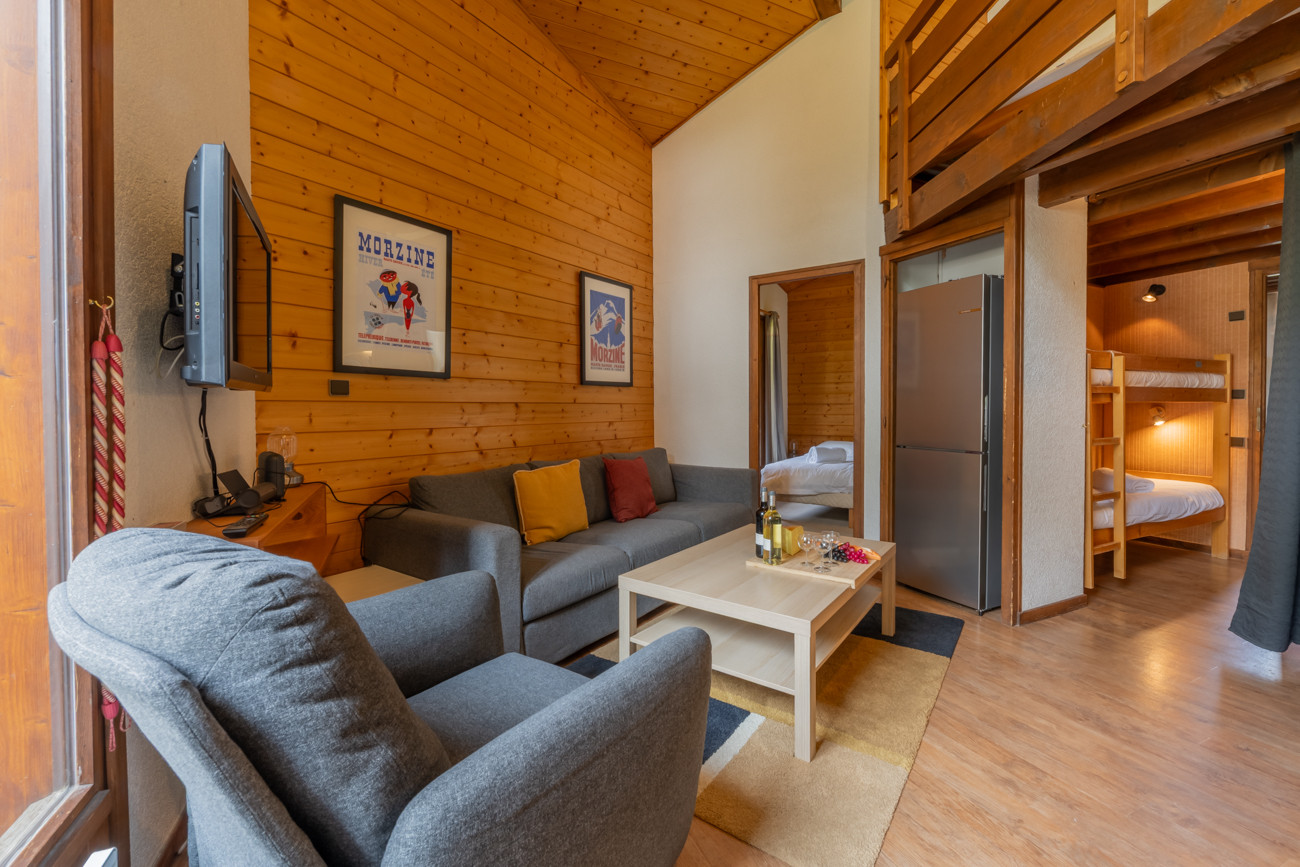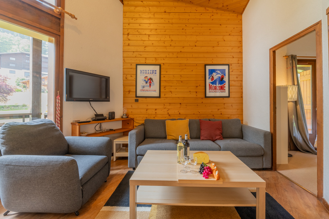 This lovely 2 bedroom with mezzanine apartment is ideal for up to 5/7 people. It is on the 'U' ski bus or only a short walk to the centre of Morzine.