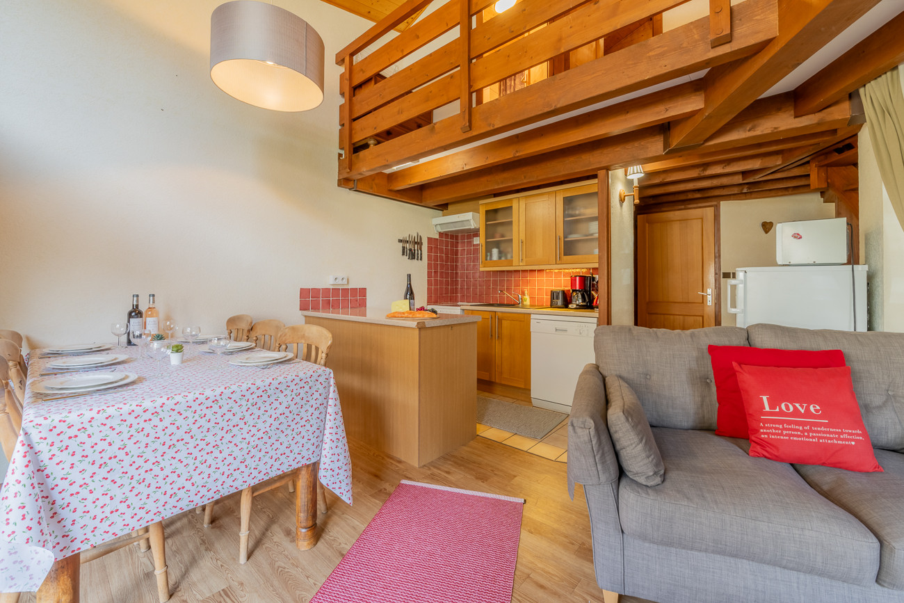 This lovely 2 bedroom duplex apartment is ideal for up to 5 people. It is on the 'U' ski bus or only a short walk to the centre of Morzine.