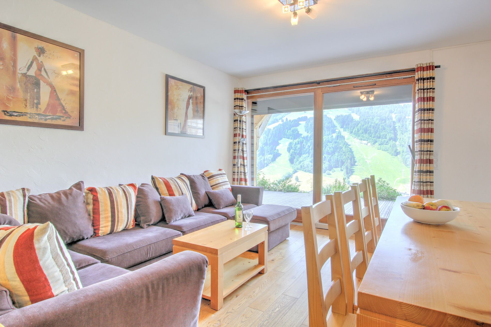 Apartment Le Croix is a lovely apartment set above Morzine on the Route d’Avoriaz. The apartment is best suited to those with a car as the walk into Morzine is approx. 20min. There is a local free shuttle bus operating during the day. There are large windows and a big private terrace with jacuzzi with amazing mountain views of the whole resort.