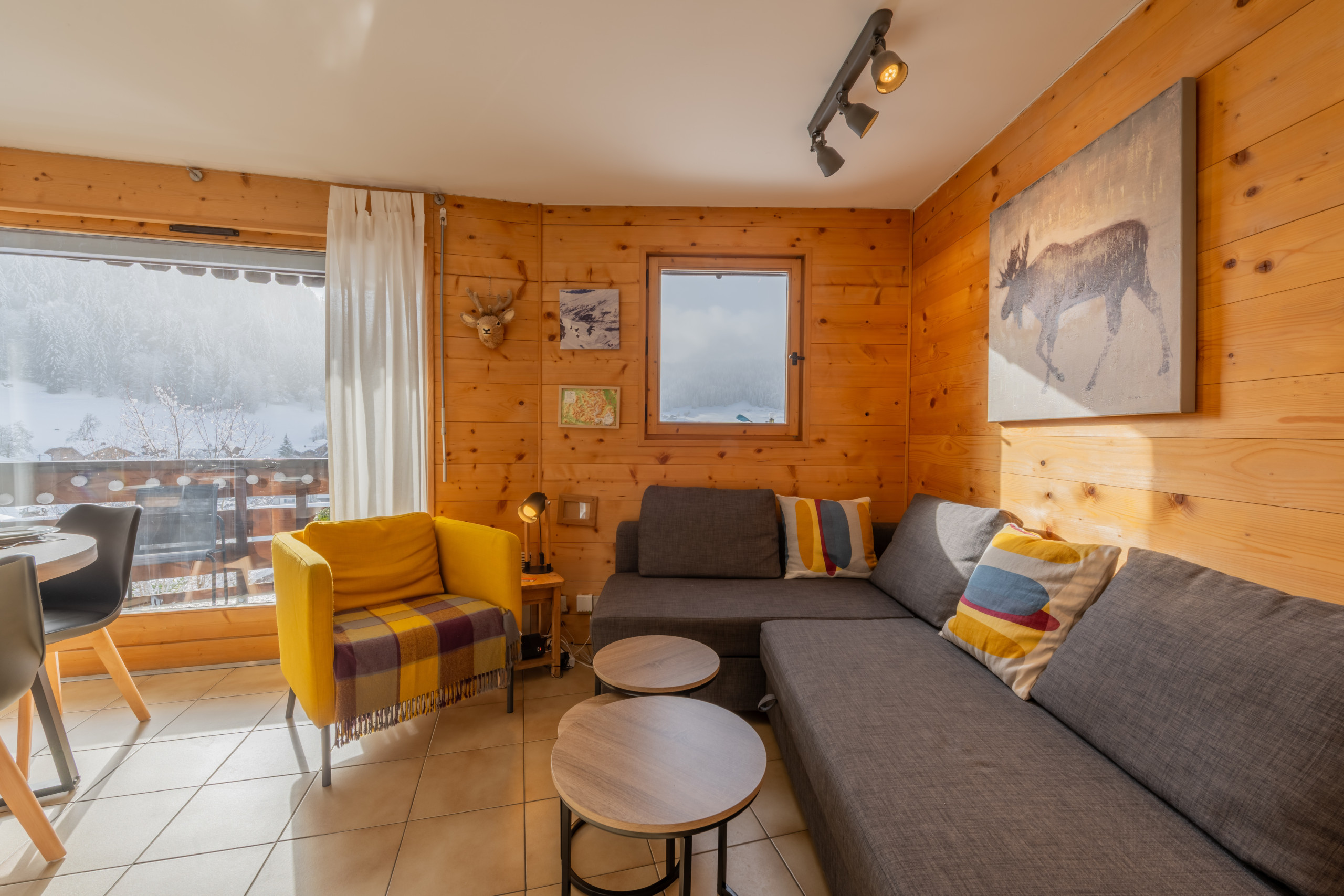 Lovely 1 bedroom apartment with amazing views of Morzine and directly on a free bus route.