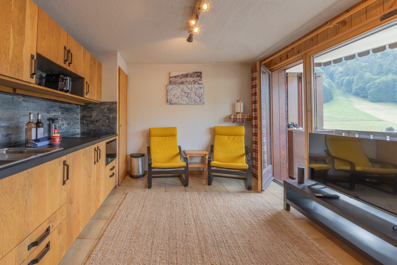Lovely 1 bedroom/studio with amazing views of Morzine and directly on a free bus route.