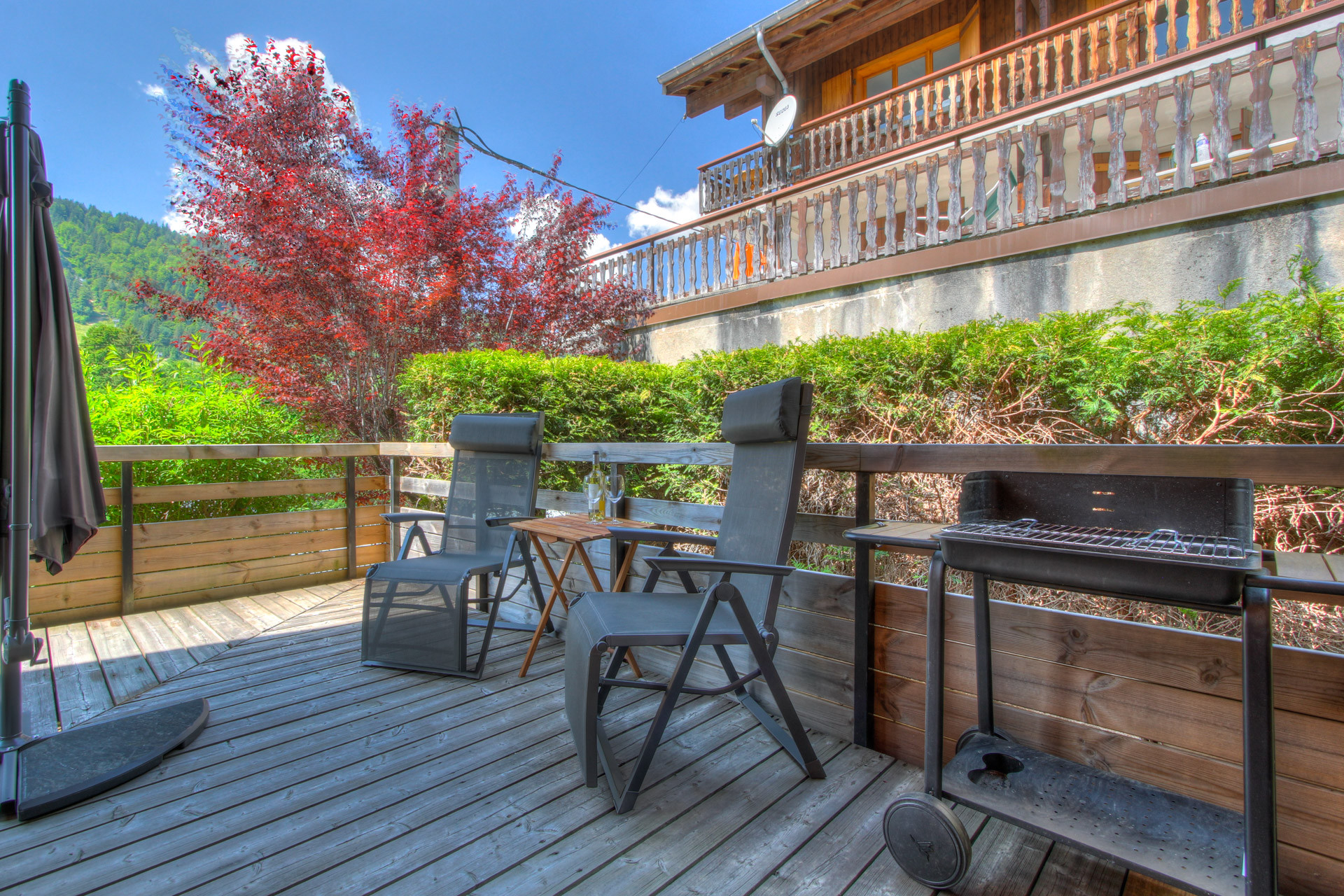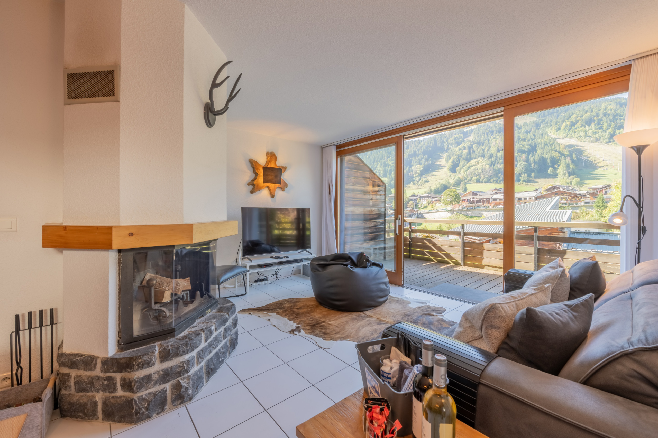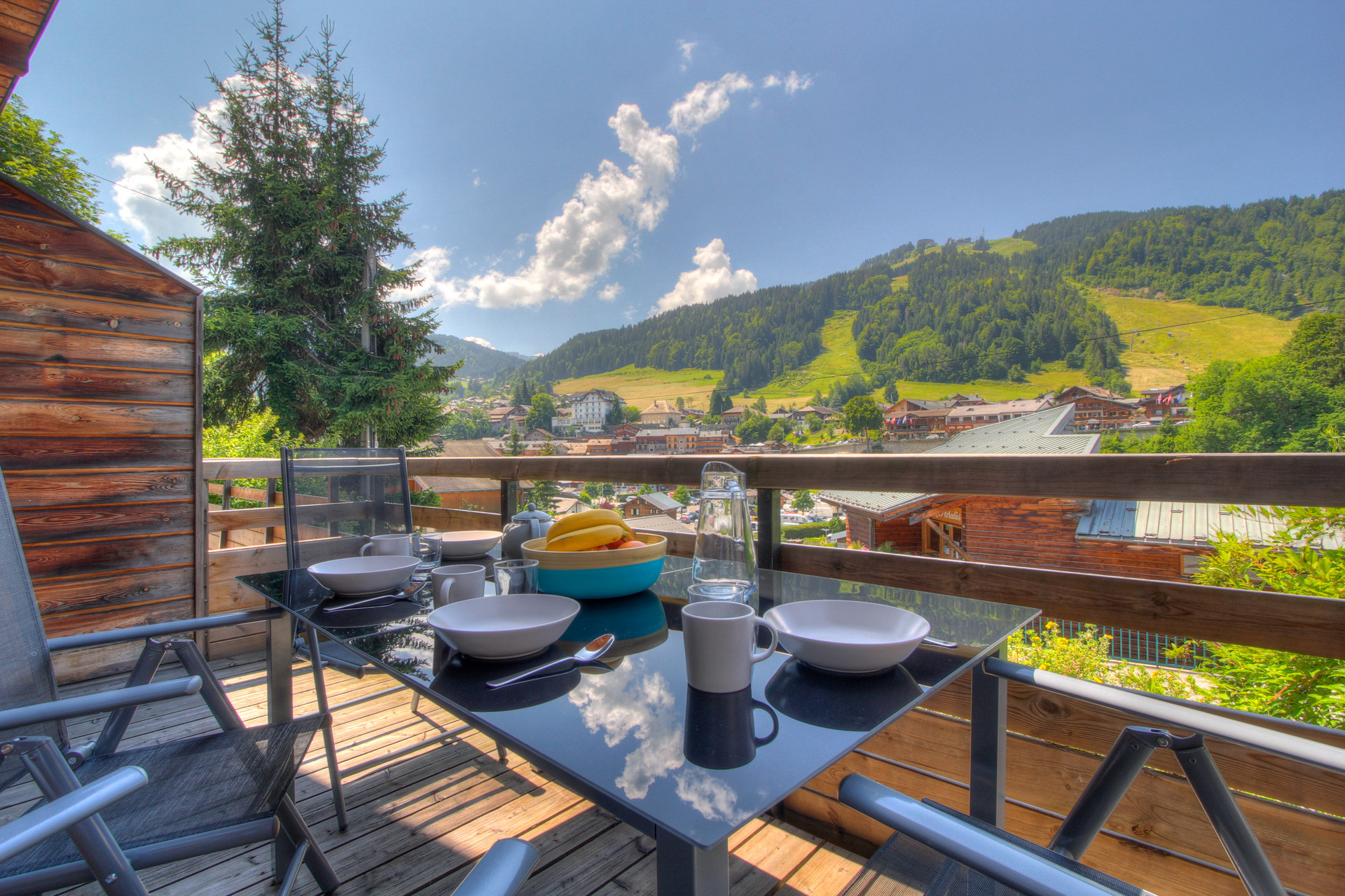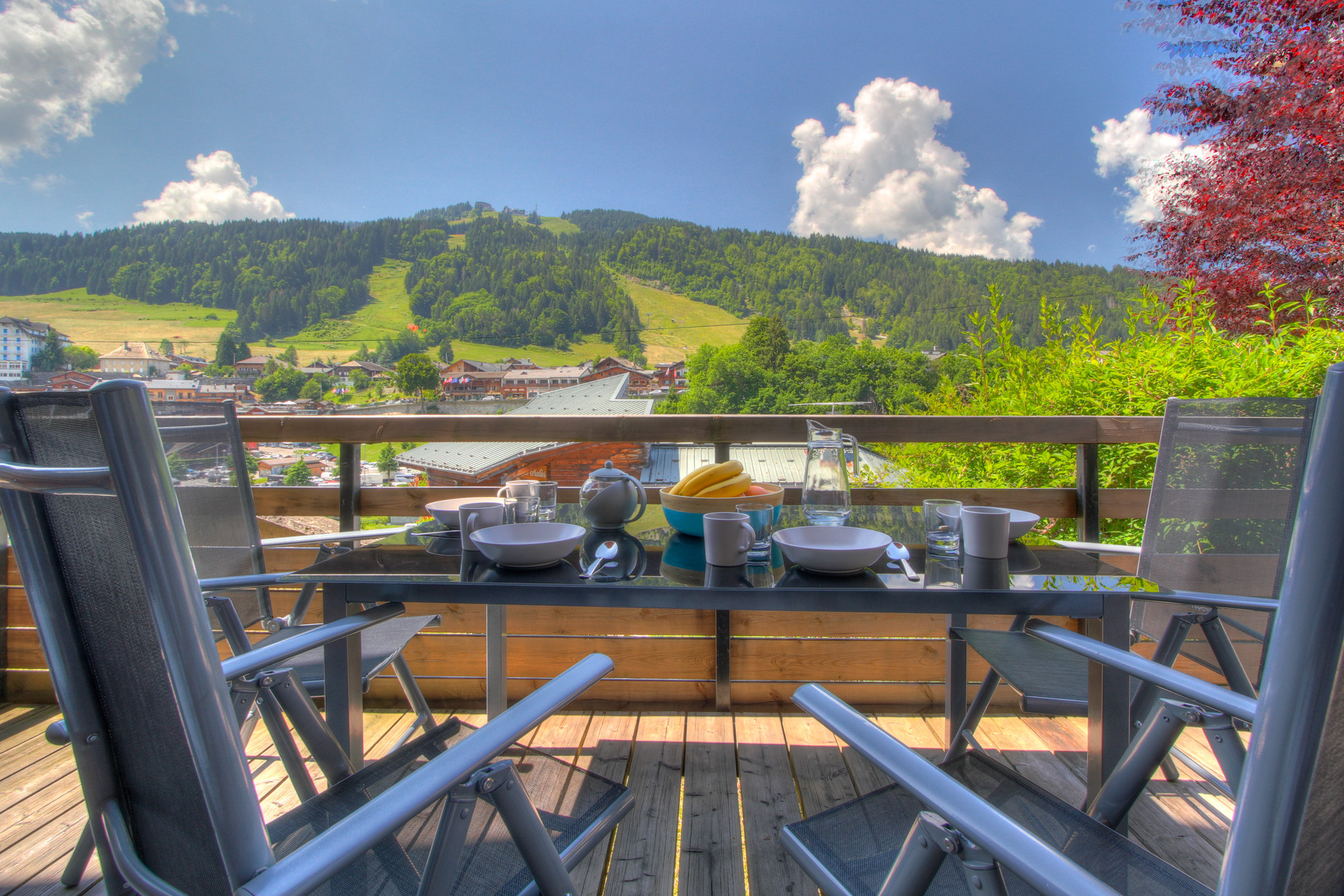 The apartment is located on the Route des Bois Venants, it has a large south facing terrace/garden with views over Morzine.