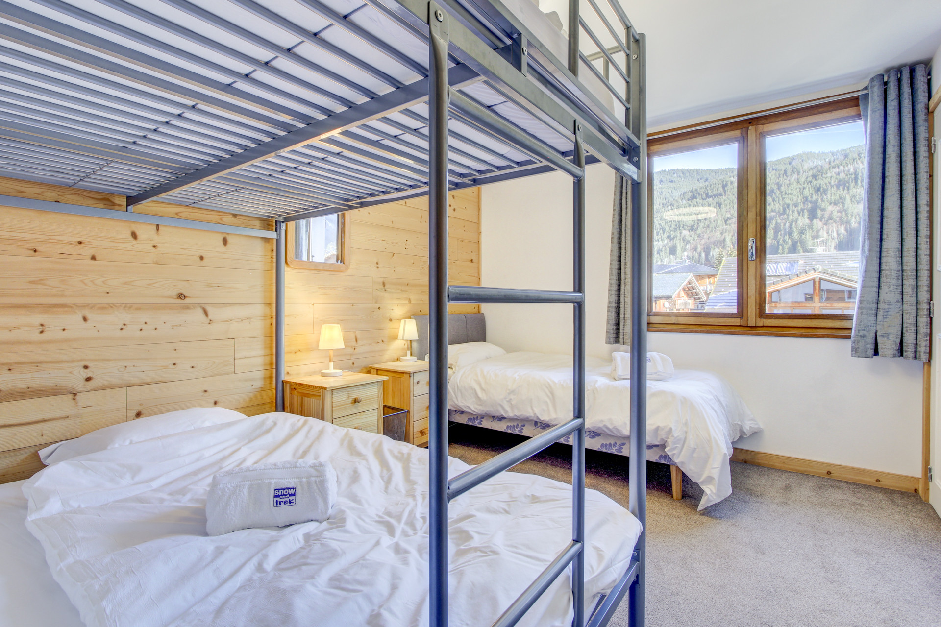 Bedroom with 1 single bed and a set of double bunk beds with window (sleeps 2/3 adults or 2 adults and 2 children <12yrs)