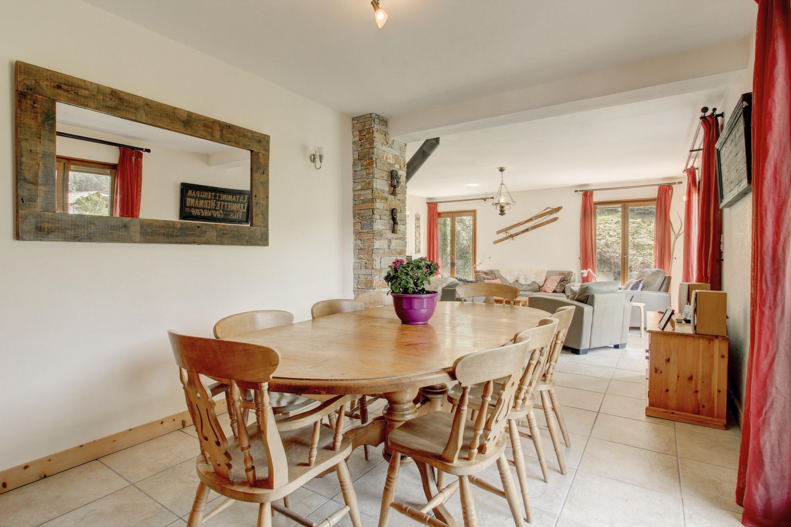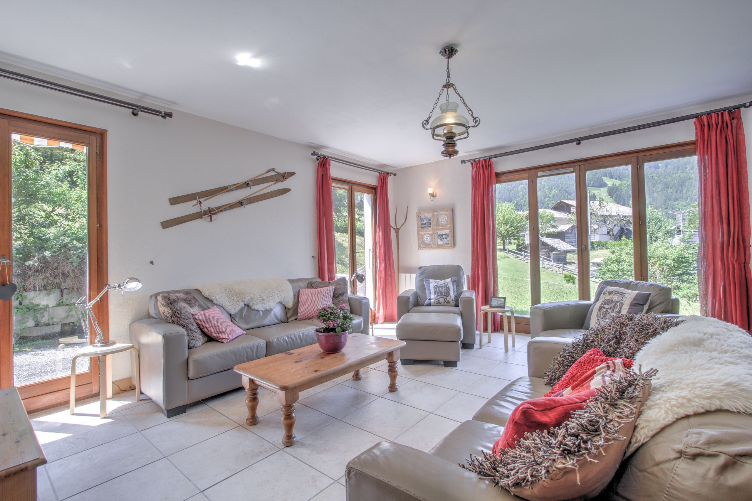 Large L shaped lounge/diner with plenty of comfy seating. Dining table seating 10. Doors to south facing terrace and garden with views of Le Pleney and Morzine