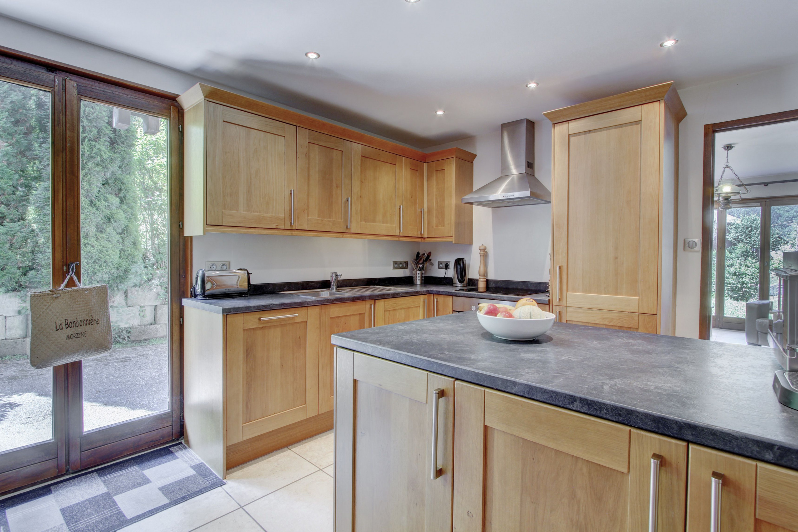 Large fully equipped kitchen (full size oven, dishwasher, Nespresso coffee machine etc) with seating, door to garden