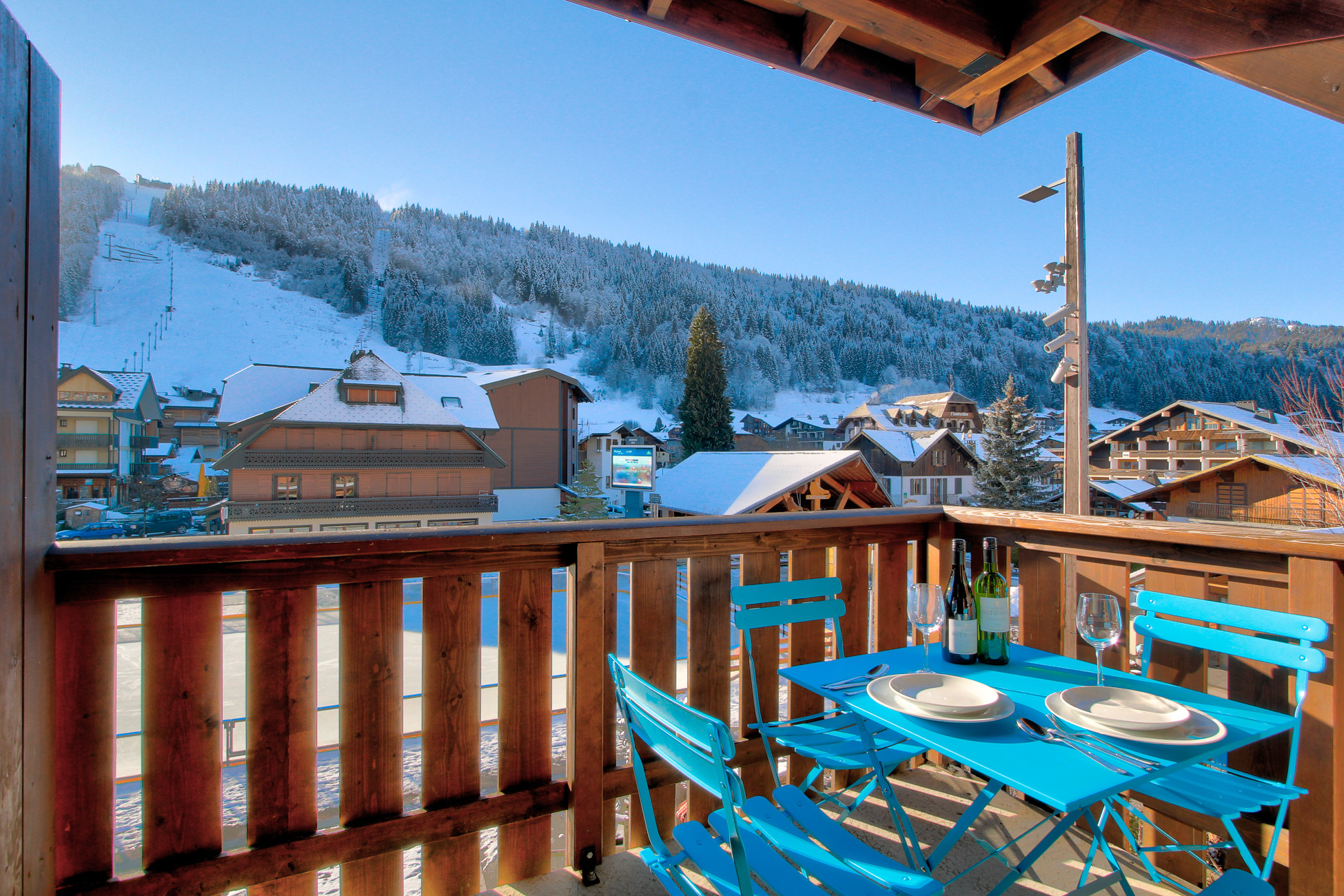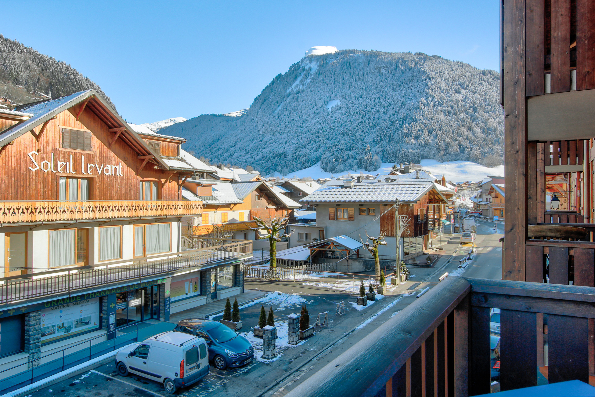 Doors on to SE facing balcony overlooking Le Pleney and the Tourist Office square/ice rink (In winter)
