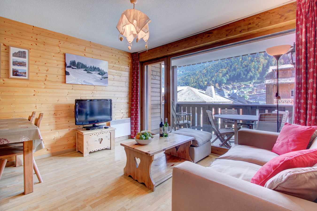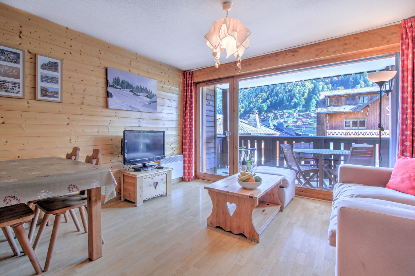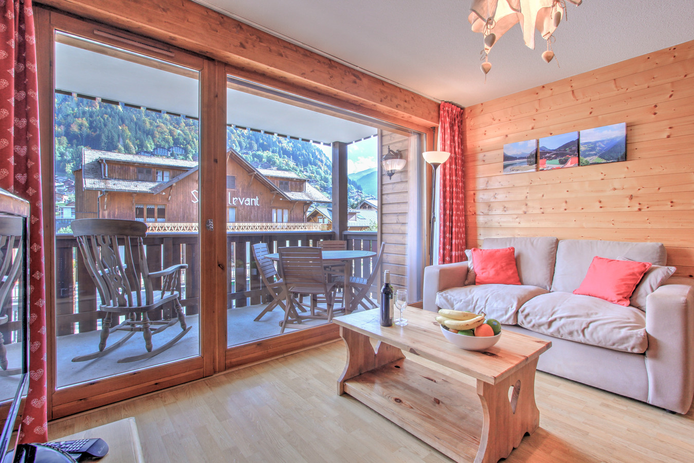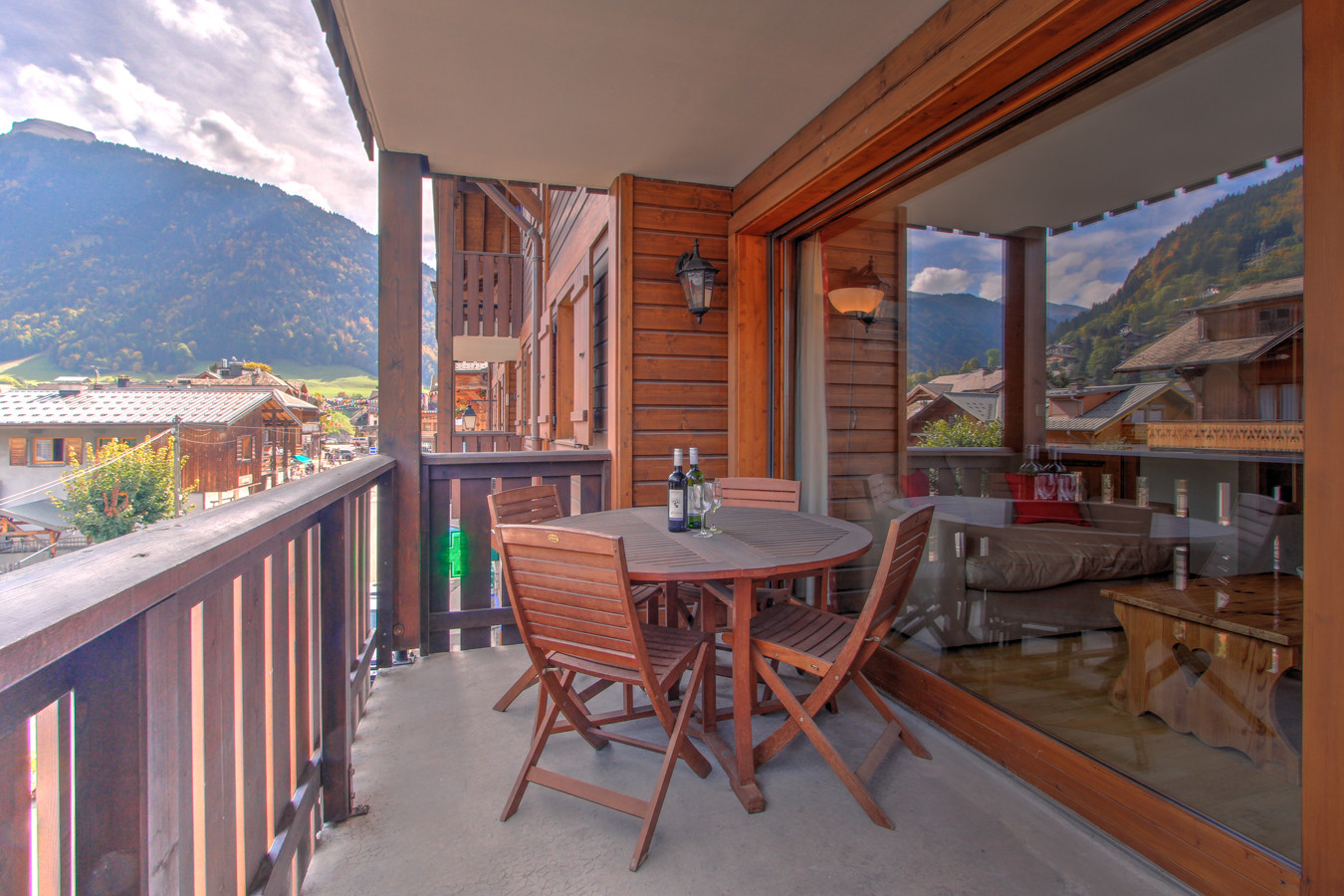 Doors on to NE facing terrace overlooking Super Morzine and Morzine centre