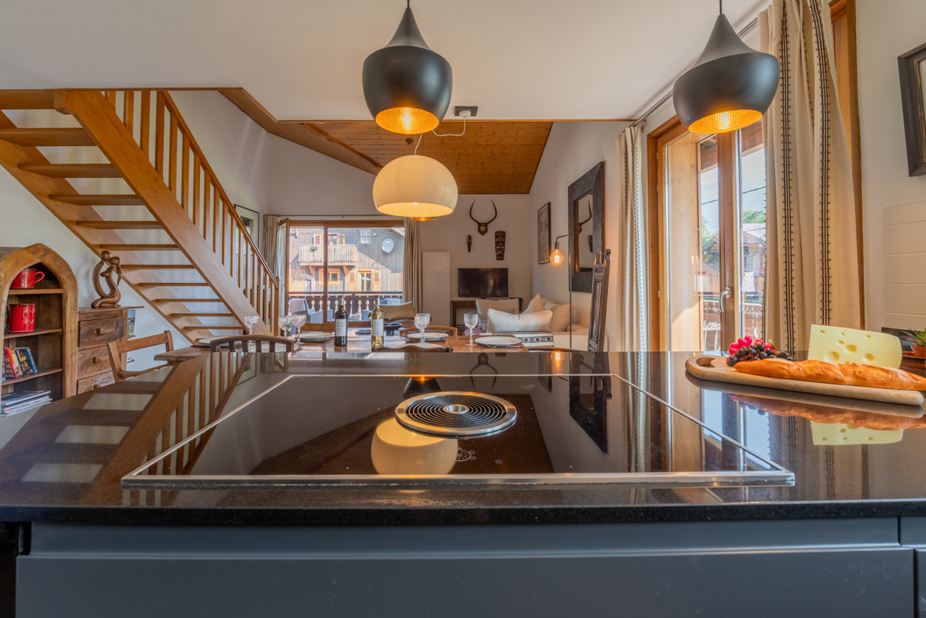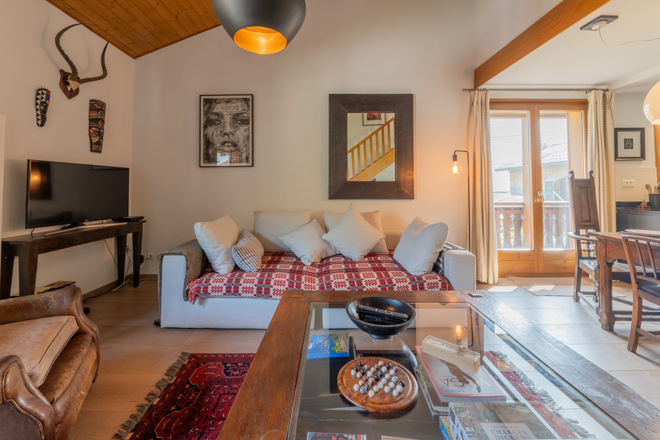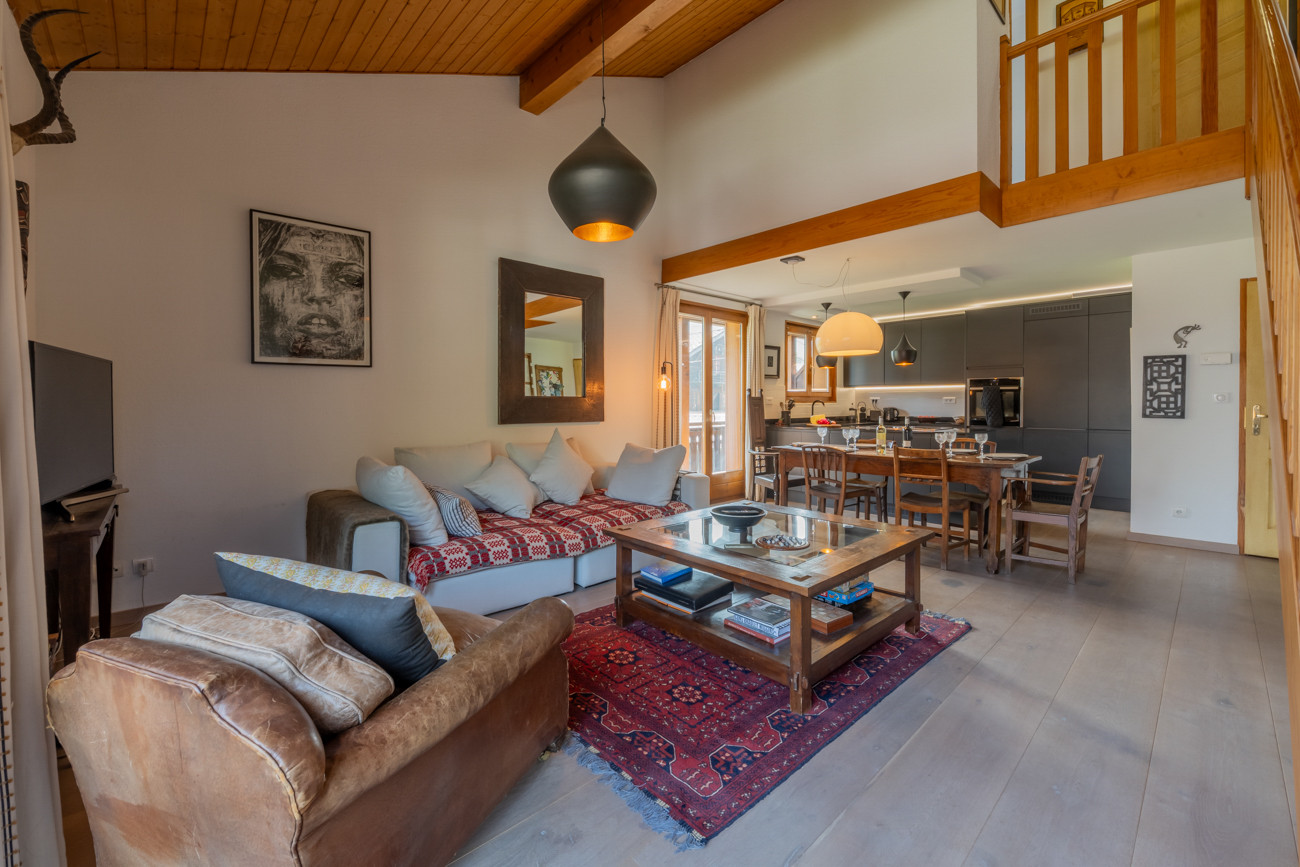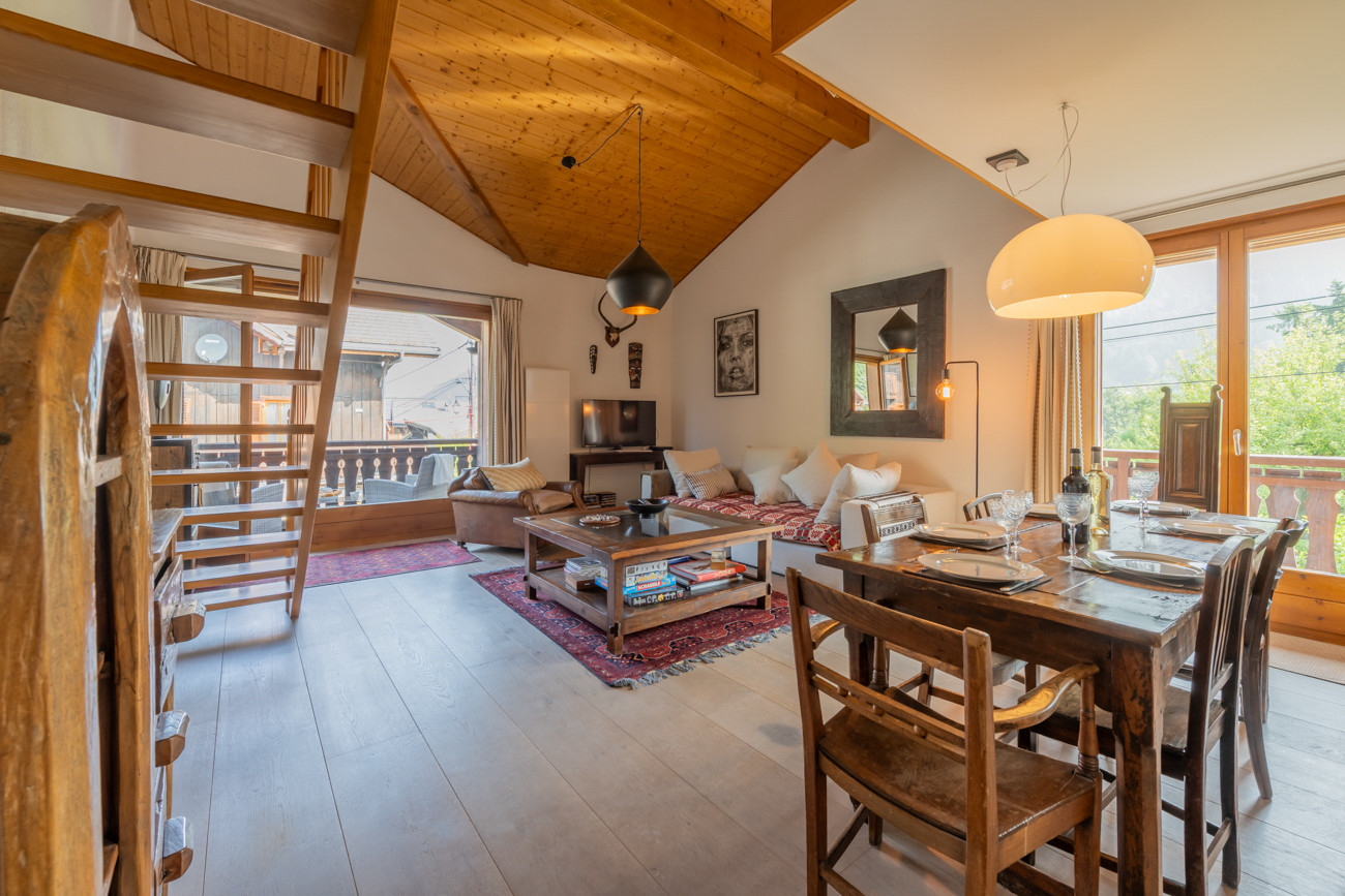 Les Tavillons is a beautiful apartment set only a short falt walk from the centre Morzine on Route de la Plagne. There are large windows and a big balcony with mountain views.
