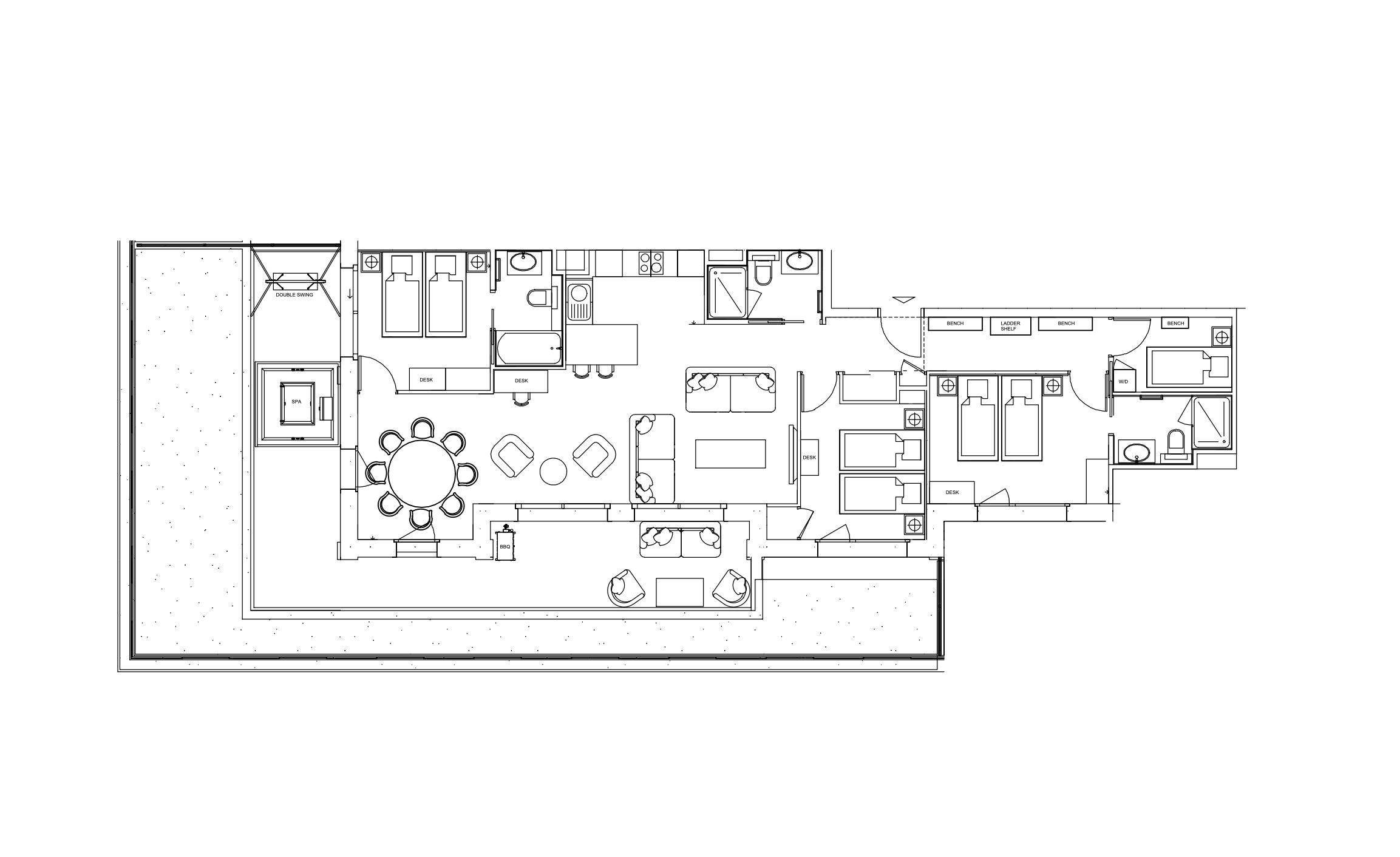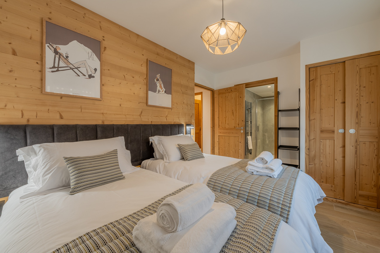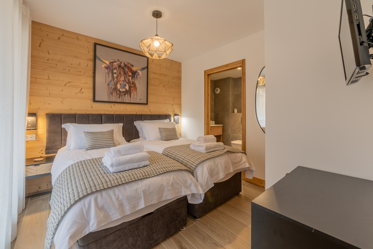 Bedroom 4 : 2 single beds with direct terrace access, desk and en-suite bath/shower and w/c