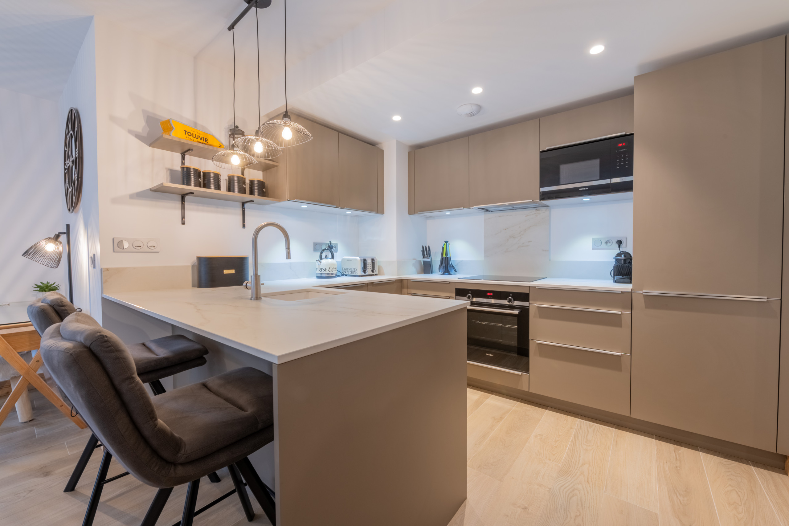 Toluvie was completed at the beginning of 2025 and has a spacious living area with access to a large fully equipped terrasse along with a hot tub. There is a large open plan living space has comfy seating for 8 and TV. The dining table seats 8 comfortably. The is also a dedicated work desk.