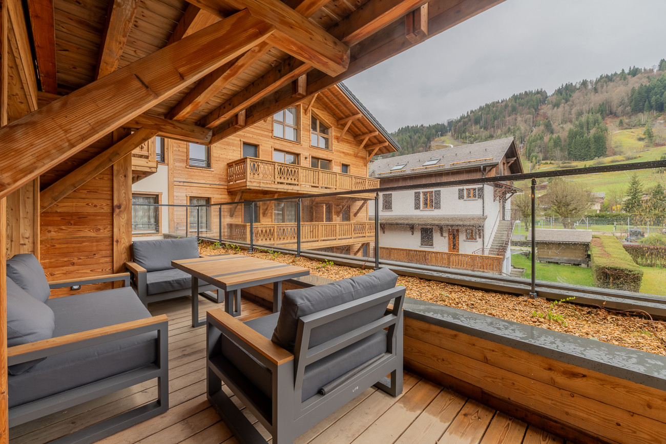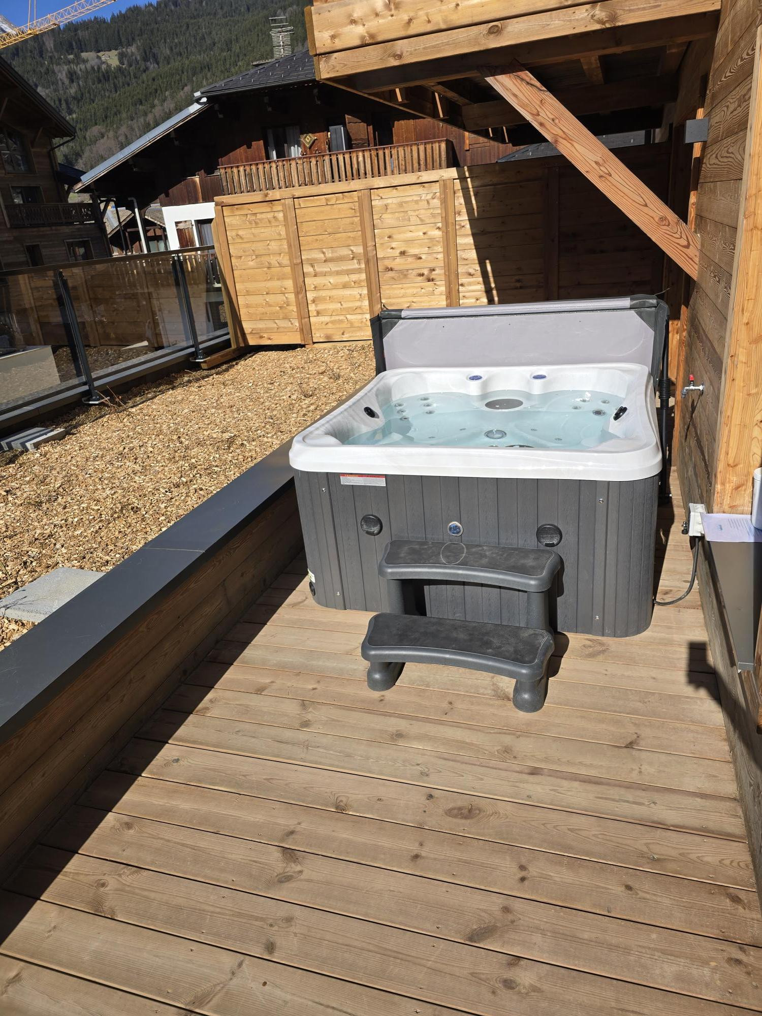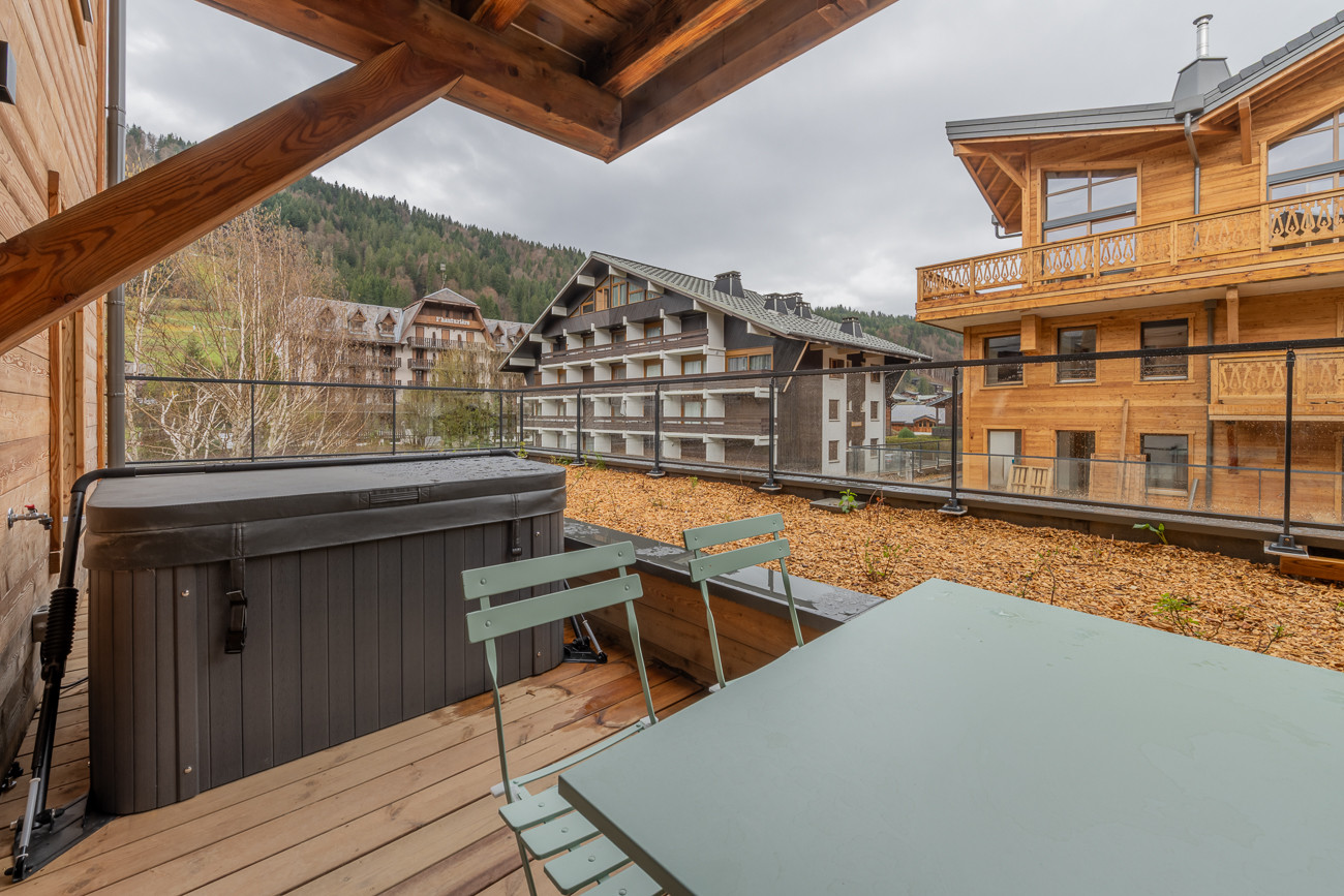 S/SW facing terrace with jacuzzi overlooking Morzine.