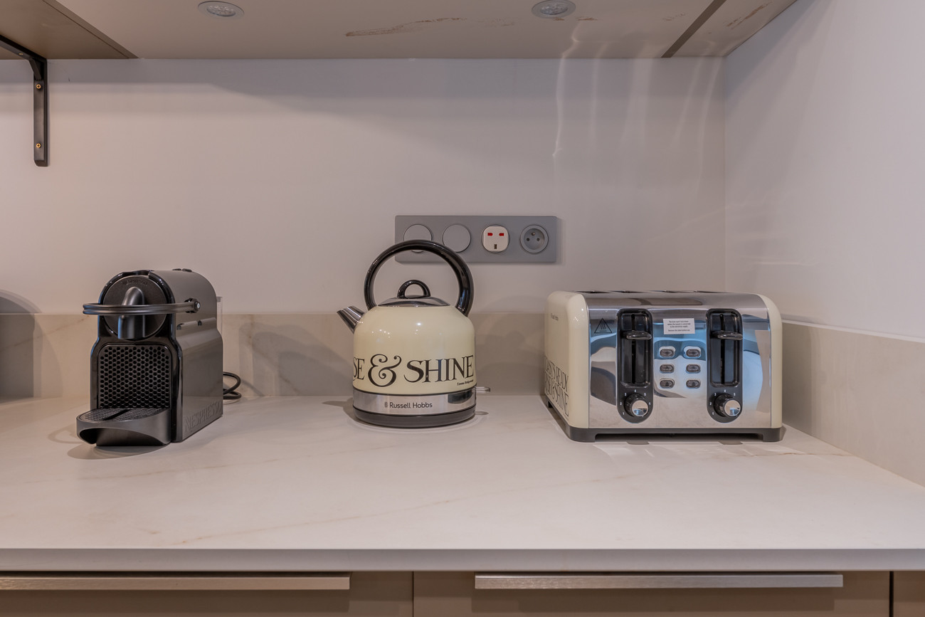 The kitchen is fully equipped fridge, freezer, oven, ceramic hob, microwave, kettle, Nespresso coffee machine, dishwasher, washing machine and toaster.