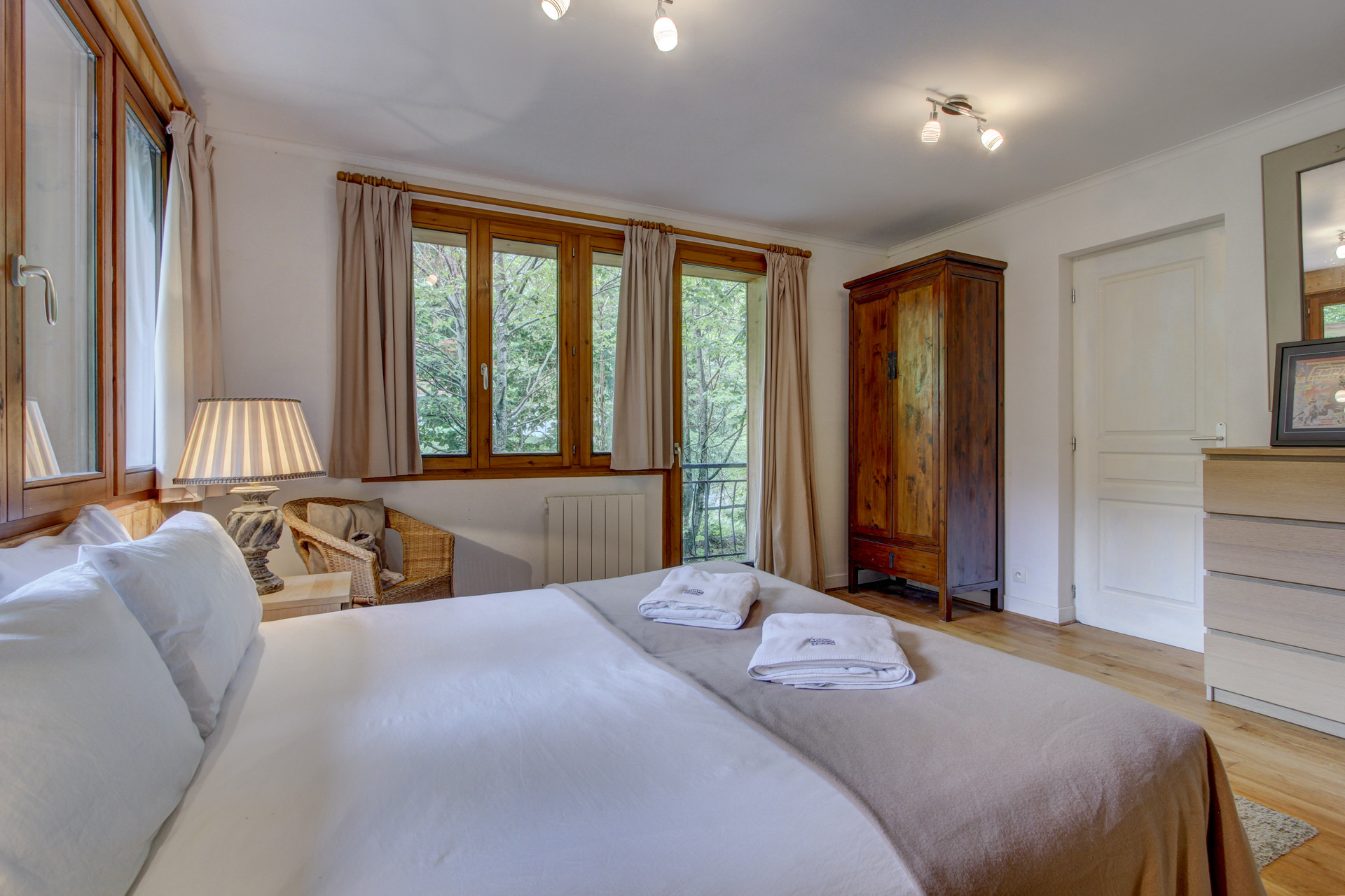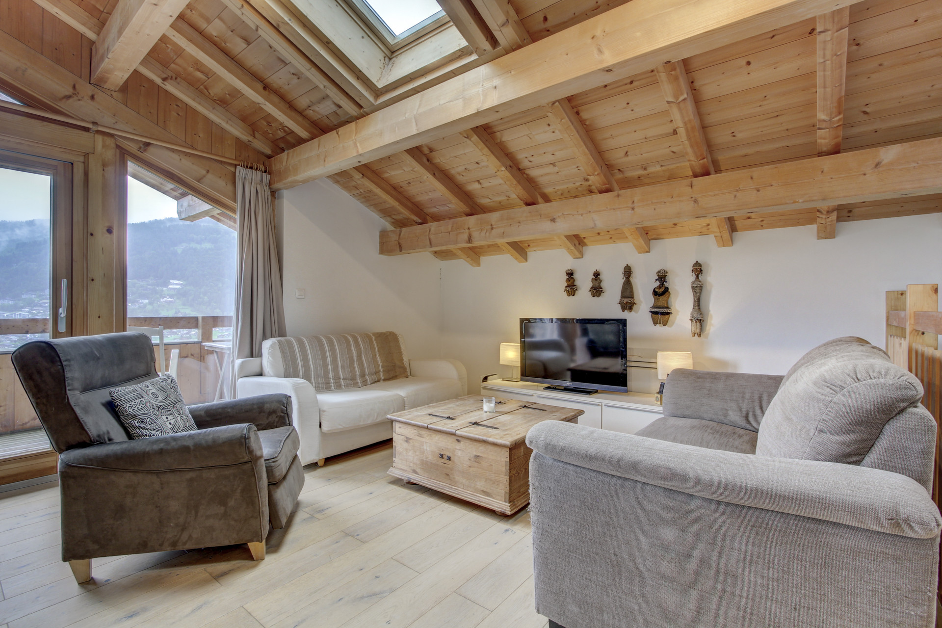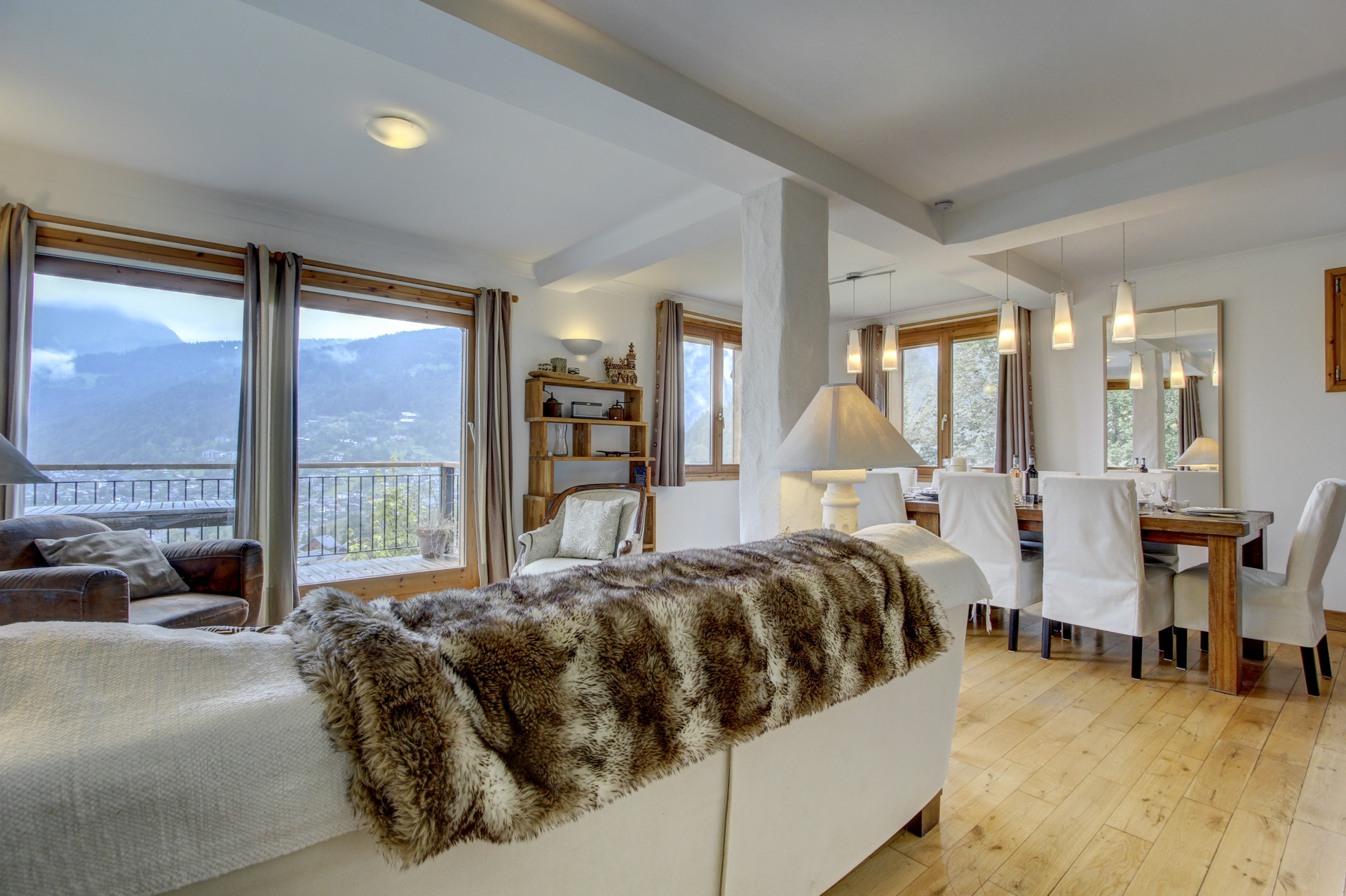 The chalet accommodates 10 guests in 6 bedrooms all with en-suite or private bathrooms. The chalet is on 3 levels with two large living areas both with large feature windows giving amazing views of the Morzine valley.